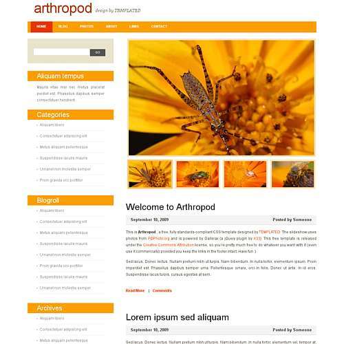 A simple orange/white/red design. Includes a large, prominent gallerax-powered gallery.