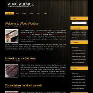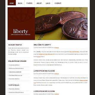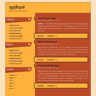 A fairly conventional two column design, with a large banner/logo combo and a brown/white/orange color palette.