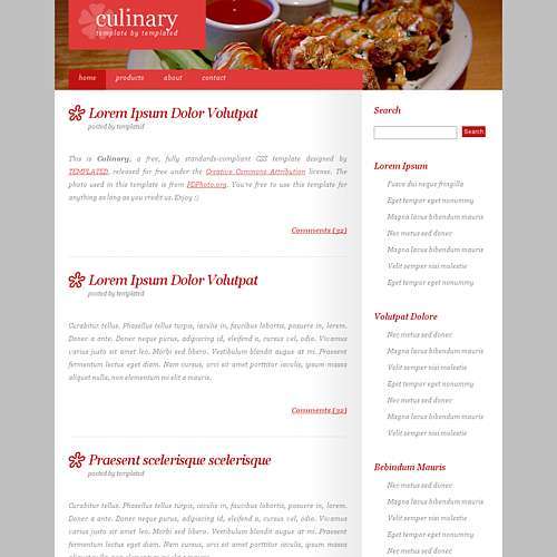 A red/white two column design with some subtle gradients and background patterns.