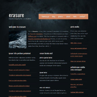 A glossy black and white, three column design with an interesting header background image.