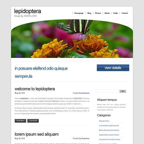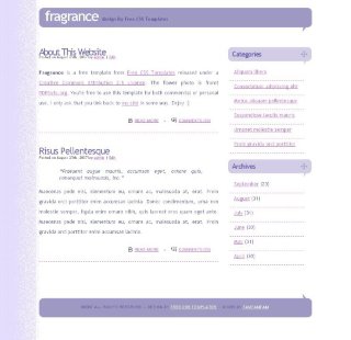 A bright and pretty conventional two column design with an interesting "curved" banner.