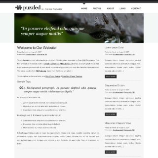 A monochrome two column design with a wide banner and a puzzle piece motif.