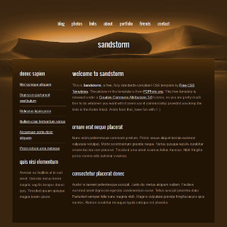 A dusty, desert-inspired design. Two columns, brown/orange color scheme.