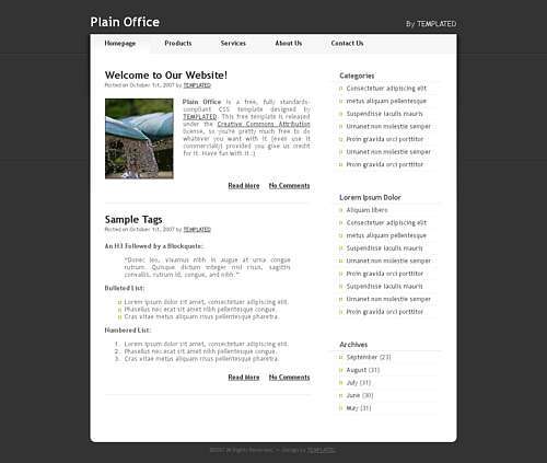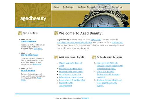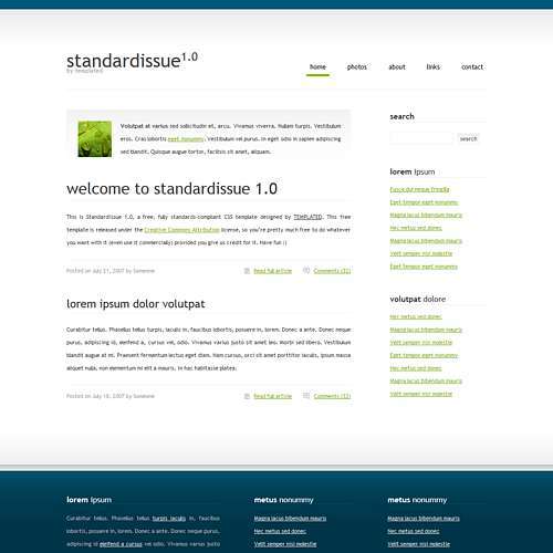 A simple news-oriented three column site. Great for showing a whole lot of content all at once. White/light gray/green color scheme.