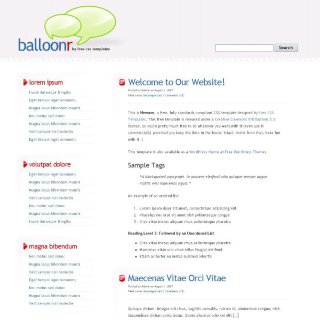 A plain, minimalistic two column design with a balloon (as in, speech balloon/bubble) motif. Light gray, white, red, and blue color scheme.