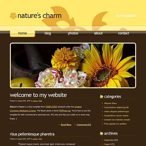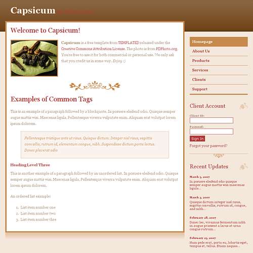 A fluid design with a two column layout and a beige/white/brown color scheme.