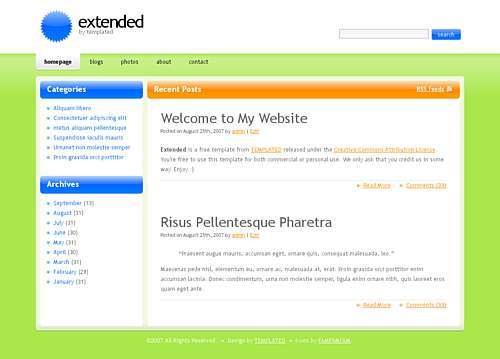 A glossy, fluid design with a three column layout and various styled page elements. Green/white/yellow color scheme.