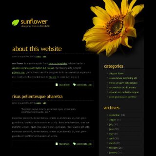 A dark (yet still weirdly cheery) two column design built around a large photo of a sunflower.